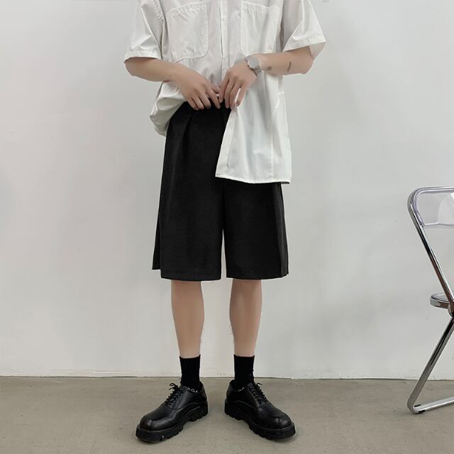 【予約販売】ハーフパンツ メンズ シック ブラック ブラウン モード系 短パン スタイリッシュ こなれ感 お洒落 韓国 トレンド 春 秋 夏 M/L/XL