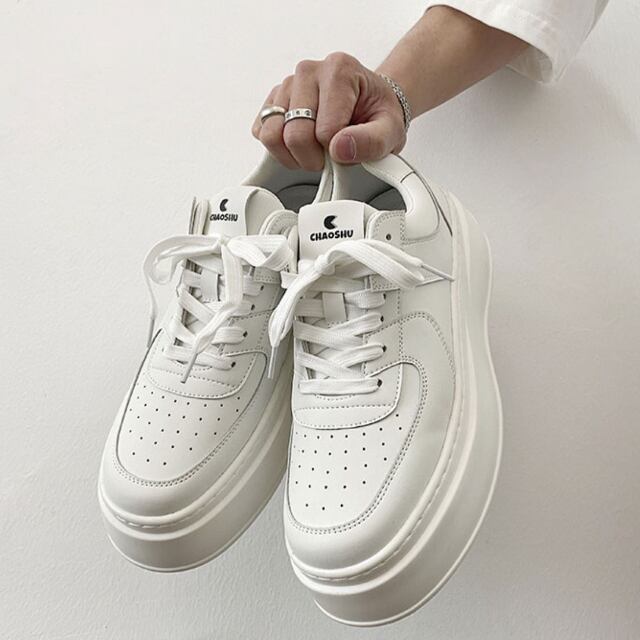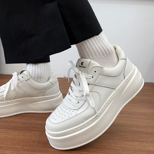 【予約販売】スニーカー 厚底 ダッド メンズ スニーカー シンプル 靴 白 ホワイト シック お洒落 カジュアル ストリート 24cm/24.5cm/25cm/25.5cm/26cm/26.5cm