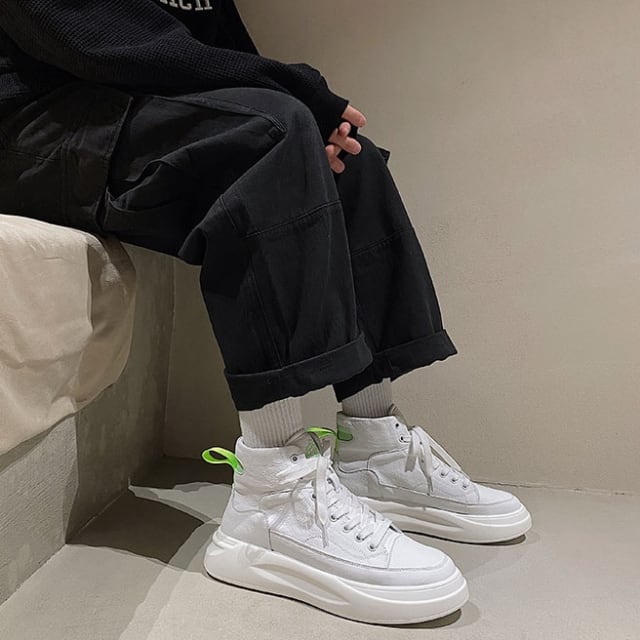 【予約販売】スニーカー ハイカット 厚底 ダッド メンズ ビッグシルエット アグリースニーカー ホワイト 白 靴 グリーン/ブルー スポーティー お洒落 カジュアル ストリート 24cm/24.5cm/25cm/25.5cm/26cm/26.5cm