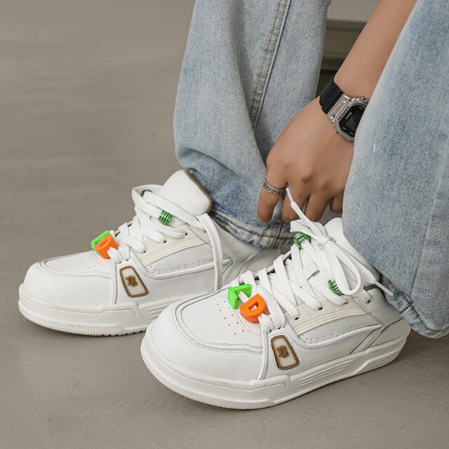 【予約販売】スニーカー 韓国 ダッド メンズ スニーカー レザー 差し色 靴 白 ホワイト ブラック 黒 シック お洒落 カジュアル ストリート 24cm/24.5cm/25cm/25.5cm/26cm/26.5cm/27cm