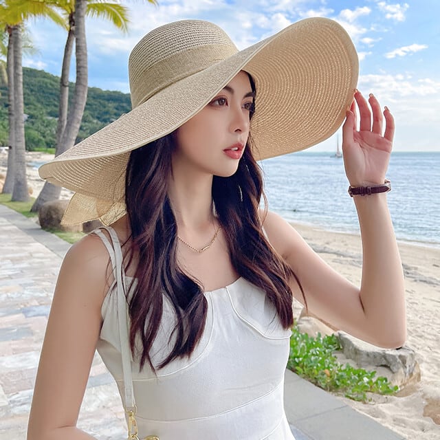 麦わら帽子 レディース 帽子 ハット 紫外線帽子 UVカット リボン フェミニン 大人可愛い ツバ広 女優帽 エレガント おしゃれ かわいい カラバリ豊富 ベージュ/ホワイト/カーキ/ローズ/ピンク/ブルー/ネイビー/ディープピンク/ベージュ×ブラック/カーキ×ブラック