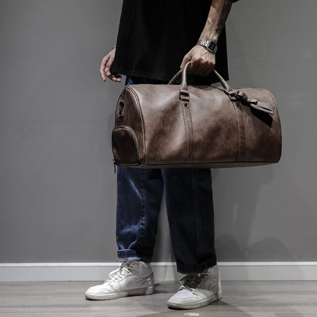 【予約販売】ボストンバッグ ショルダーバッグ 2Way メンズ 大容量 艶消し ブラウン トラベル 大型 旅行 出張 ジム スポーツ ヨガ フィットネス 旅行かばん こなれ感 お洒落 韓国 トレンド