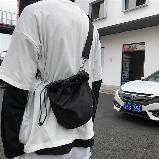 【予約販売】ショルダーバッグ メンズ シンプル ミニバッグ ブラック 黒 巾着 斜め掛け メッセンジャー スマホショルダー 防水 旅行 トラベル こなれ感 お洒落 韓国 トレンド