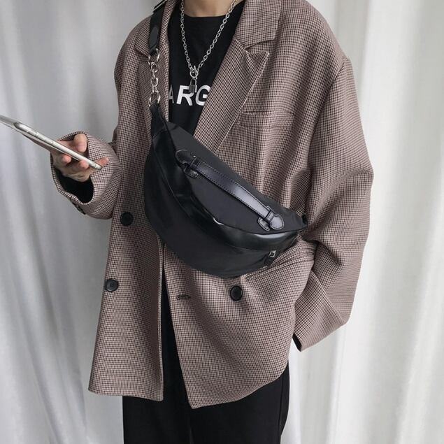 【予約販売】ショルダーバッグ シンプル メンズ ミニバッグ ブラック 黒 チェーン 斜め掛け メッセンジャー 黒 シック こなれ感 お洒落 韓国 トレンド
