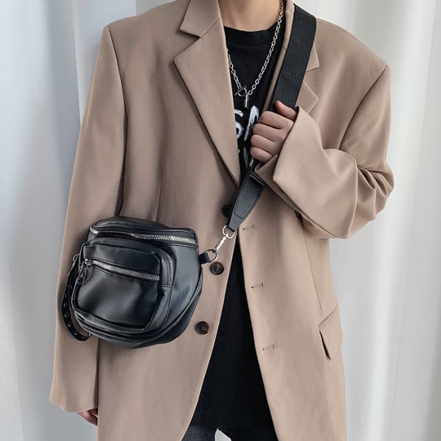 【予約販売】ショルダーバッグ シンプル メンズ ミニバッグ レザー ポケット ブラック チェーン 斜め掛け メッセンジャー 黒 フェス スマホショルダー こなれ感 お洒落 韓国 トレンド