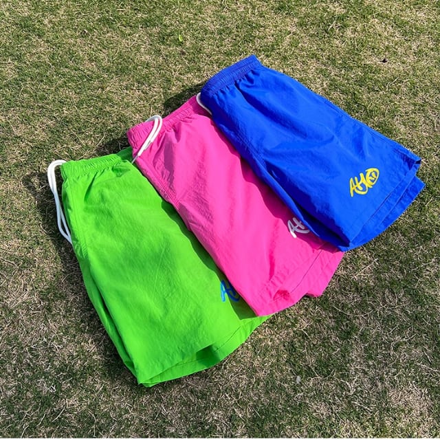 【予約販売】ハーフパンツ メンズ ストリート 派手 蛍光 ネオン ダンス ピンク/グリーン/ブルー カジュアル スエット スタイリッシュ こなれ感 お洒落 韓国 トレンド 春 秋 夏 M/L/XL/2XL