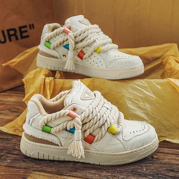【予約販売】スニーカー 韓国 メンズ スニーカー 厚底 靴 白 ホワイト 極太シューレース デザイン お洒落 カジュアル ストリート 24cm/24.5cm/25cm/25.5cm/26cm/26.5cm/27cm