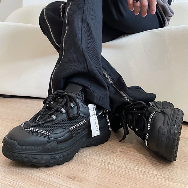 【予約販売】スニーカー 韓国 メンズ ダッドスニーカー ユニセックス 厚底 靴 ブラック ホワイト デザイン スポーティ お洒落 カジュアル ストリート 23cm/23.5cm/24cm/24.5cm/25cm/25.5cm/26cm/26.5cm