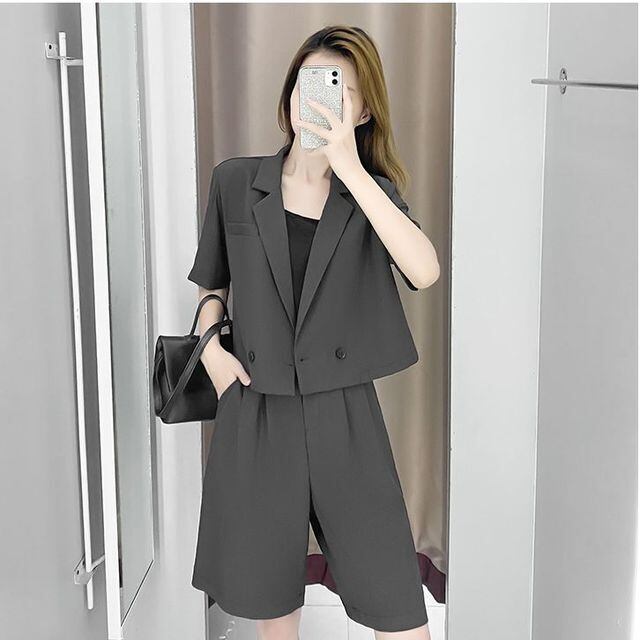 セットアップ レディース ツーピースセット 上下セット ジャケット パンツセット ブラック グレー S/M/L/XL