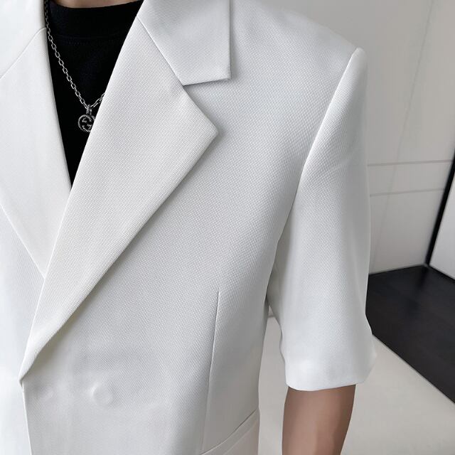【予約販売】2点セット スーツ パンツ メンズ セットアップ ジャケット 半袖 無地 男前 ブラック ホワイト 上下 パーティ お出かけ パーティー 二次会 結婚式 春 夏 秋 M/L/XL/2XL