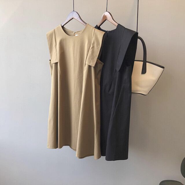 ワンピース レディース ミニ丈 ショート丈 ミニワンピ ノースリーブ ビッグカラー おしゃれ 大人可愛い スタイリッシュ お出かけ 旅行 春夏 カーキ/ブラック S/M/L