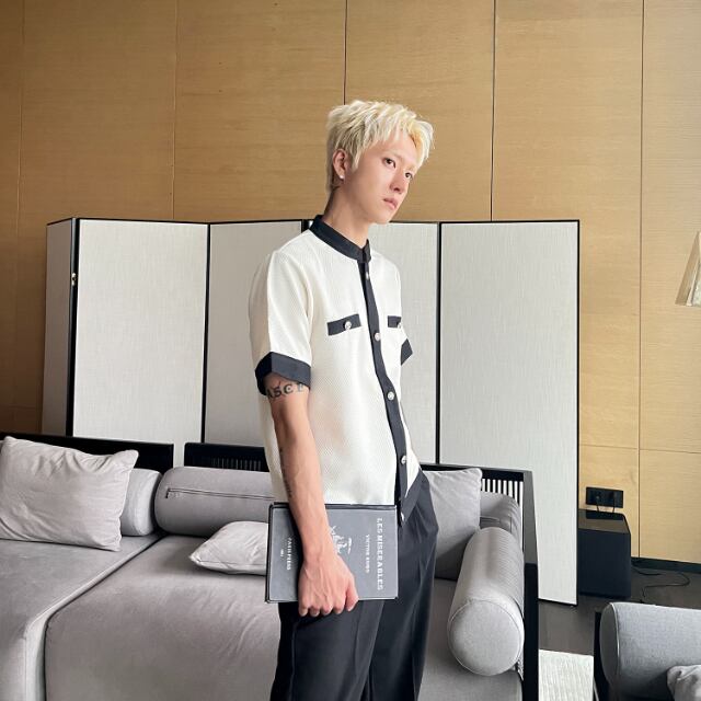 【予約販売】カーディガン トップス 半袖 バイカラー モノトーン メンズ ホワイト ブラック こなれ感 カジュアル シンプル モード お洒落 韓国 トレンド 春 夏 M/L/XL