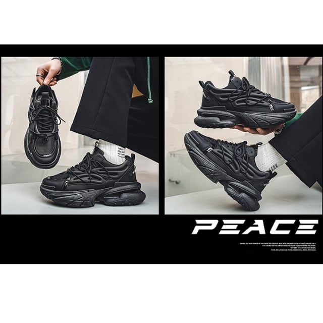 【予約販売】スニーカー 韓国 メンズ ダッドスニーカー ごつめ 厚底 靴 ブラック 黒 オフホワイト デザイン スポーティ お洒落 カジュアル ストリート 24.5cm/25cm/25.5cm/26cm/26.5cm