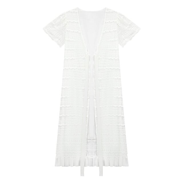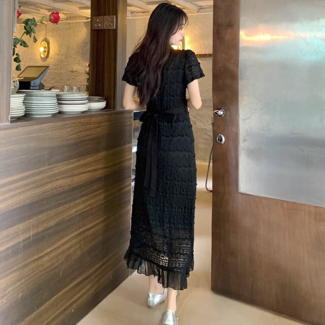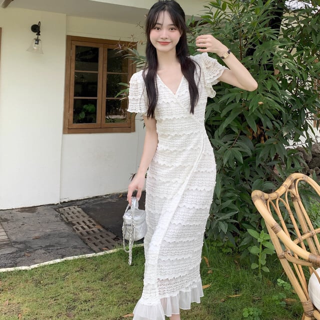 ワンピース レディース ロングワンピ ロング丈 半袖 レース シースルー カシュクール リボン 春夏 旅行 お出かけ デート リゾート ホワイト/ブラック 大きいサイズ M/L/XL/2XL/3XL/4XL