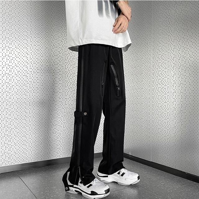 【予約販売】スエットパンツ ボトムス ジャージ メンズ サイドジップ パンツ ダンス ストリート ルーズ ジョガーパンツ ブラック カジュアル こなれ感 お洒落 韓国 トレンド M/L/XL/2XL/3XL/4XL/5XL
