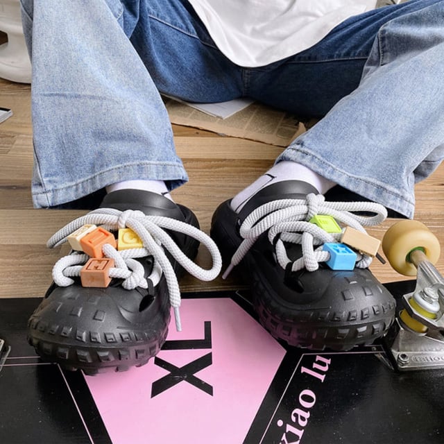 【予約販売】サンダル メンズ レディース ポップ レースアップ ブロック ユニセックス ビーサン ビーチサンダル スリッパ ブラック/ホワイト カジュアル スポーティー ビーチサンダル 靴 お洒落 ストリート 韓国 23cm/23.5cm/24cm/24.5cm/25cm/25.5cm/26cm/26.5cm/27cm/27.5cm