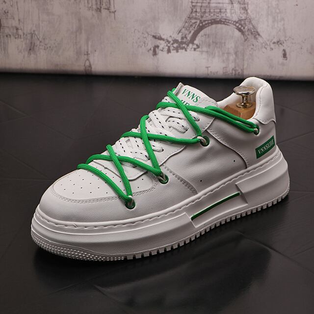 【予約販売】スニーカー 厚底 靴ひも レースアップ シンプル 靴 ブラック ホワイト グリーン スポーティー お洒落 カジュアル ストリート 24cm/24.5cm/25cm/25.5cm/26cm/26.5cm