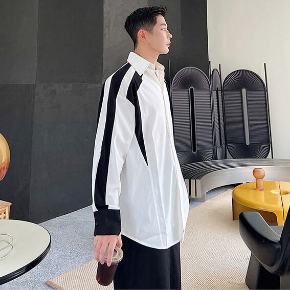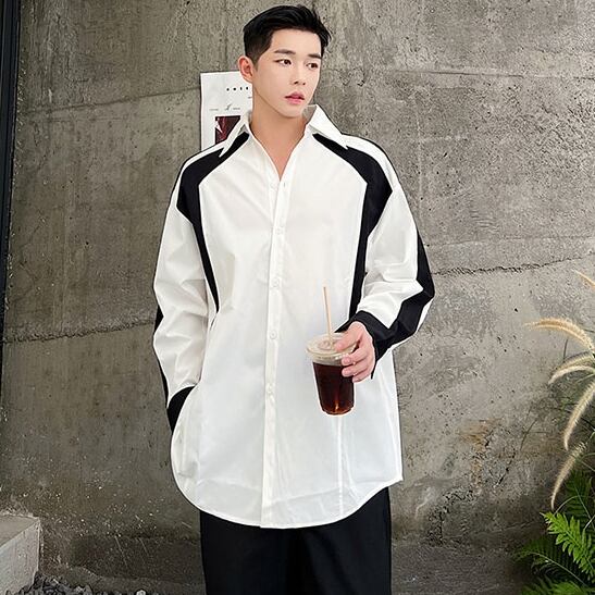 【予約販売】シャツ 長袖 シンプル 無地 ライン ベーシック モノトーン オーバーサイズ メンズ ホワイト ブラック カジュアル シック こなれ感 お洒落 結婚式 パーティー 韓国 トレンド 春 秋 M/L/XL