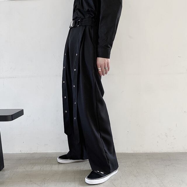 【予約販売】パンツ ボトムス メンズ ストレート レトロ 黒 ブラック ボタン カジュアル こなれ感 お洒落 韓国 トレンド 秋 夏 M/L/XL