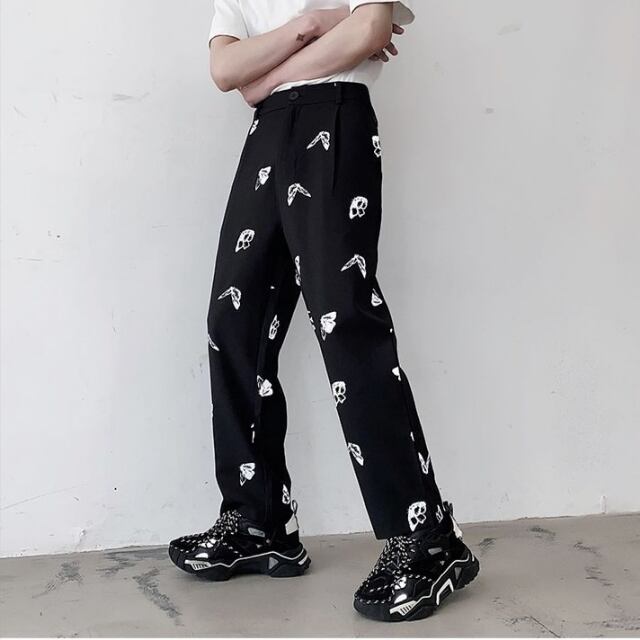 【予約販売】パンツ ボトムス メンズ ルーズ 反射 蝶柄 総柄 ブラック ホワイト カジュアル こなれ感 お洒落 韓国 トレンド 秋 冬 夏 春 M/L/XL