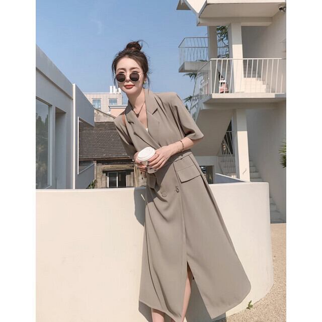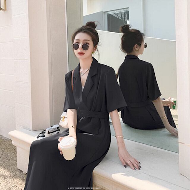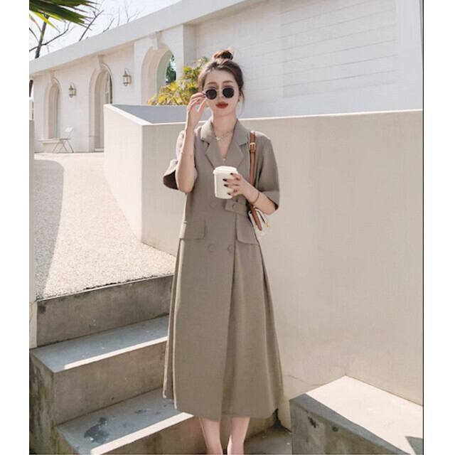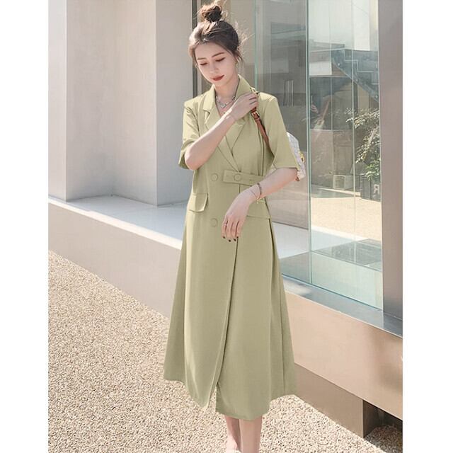 ワンピース レディース ロングワンピ 半袖 ゆったり おしゃれ かわいい スーツテイスト きちんと感 お出かけ お呼ばれ 大人かわいい カーキ/グリーン/ブラック S/M/L/XL