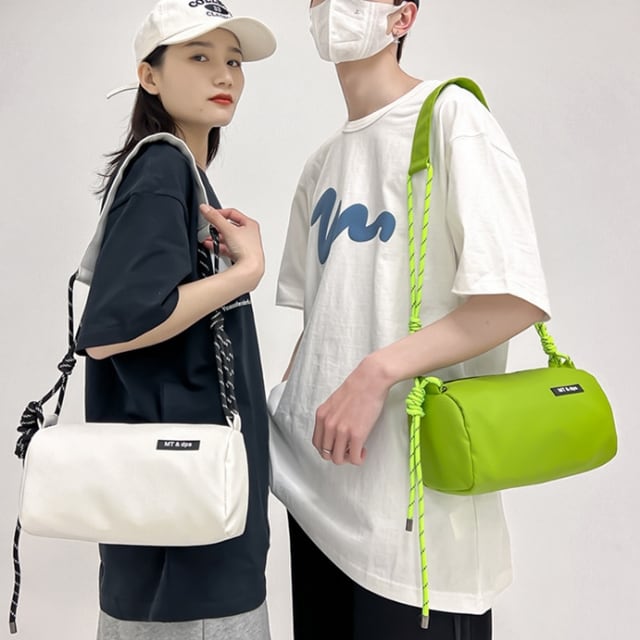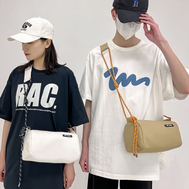 【予約販売】ショルダーバッグ シンプル メンズ ユニセックス ロープ ミニバッグ グリーン ブラック ホワイト ベージュ 斜め掛け メッセンジャー 黒 シック こなれ感 お洒落 韓国 トレンド