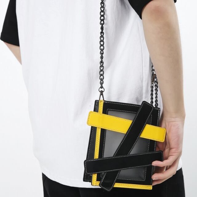 【予約販売】ショルダーバッグ チェーン メンズ レディース ミニバッグ 黒 グリーン イエロー オレンジ 斜め掛け モード クラシカル メッセンジャー 黒 こなれ感 お洒落 韓国 トレンド