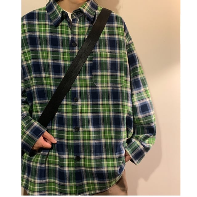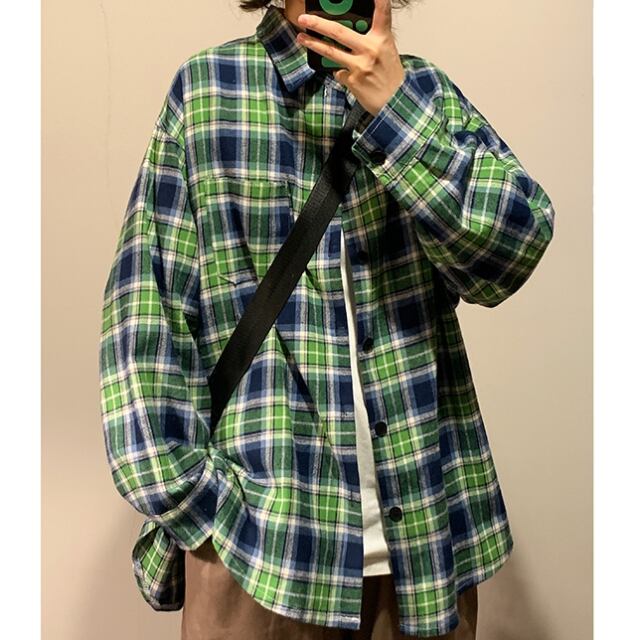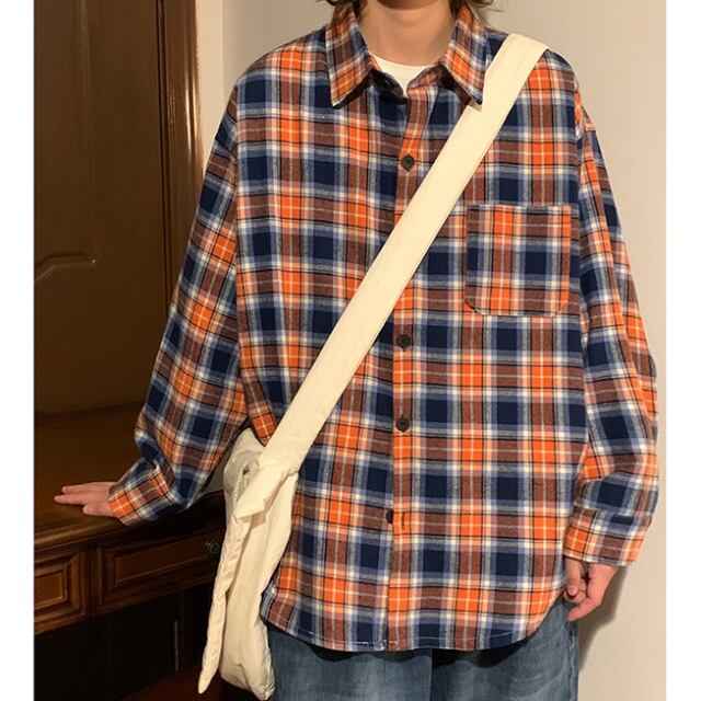 【予約販売】シャツ 長袖 トップス チェック柄 ネルシャツ フランネル メンズ オレンジ グリーン こなれ感 カジュアル シンプル モード お洒落 こなれ感 韓国 トレンド 春 夏 秋 M/L/XL/2XL