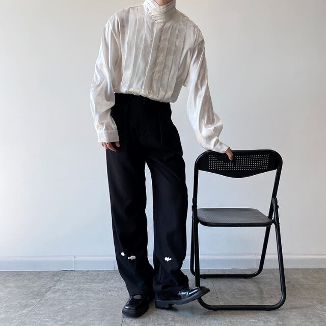 【予約販売】シャツ 長袖 トップス ハイネック ハイカラー メンズ ホワイト ブラック 花柄 光沢 こなれ感 カジュアル シンプル サテン モード お洒落 こなれ感 韓国 トレンド 春 夏 秋 M/L/XL