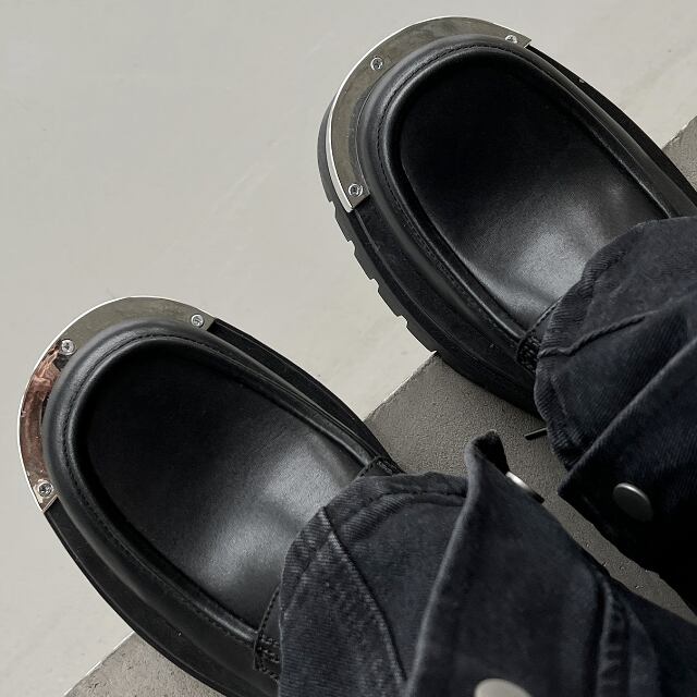 【予約販売】レザーシューズ 革靴 メンズ ローファー アイアントゥ レースアップ 厚底 シンプル 靴 デザイン フォーマル モード ブラック 黒 クラシカル お洒落 カジュアル シック パーティー 結婚式 24cm/24.5cm/25cm/25.5cm/26cm/26.5cm/27cm
