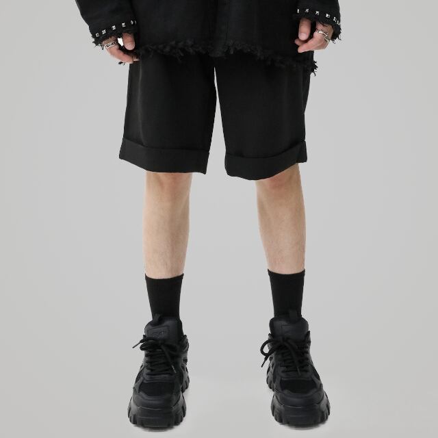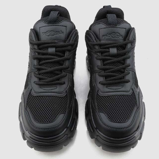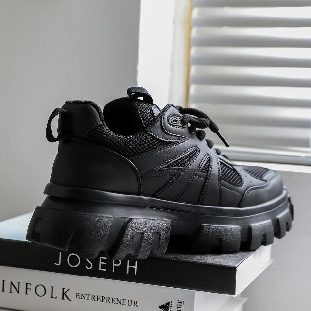 【予約販売】スニーカー シューズ ゴツ底 メンズ レースアップ 厚底 シンプル 靴 デザイン ブラック 黒 お洒落 カジュアル シック 韓国 トレンド 24cm/24.5cm/25cm/25.5cm/26cm/26.5cm/27cm