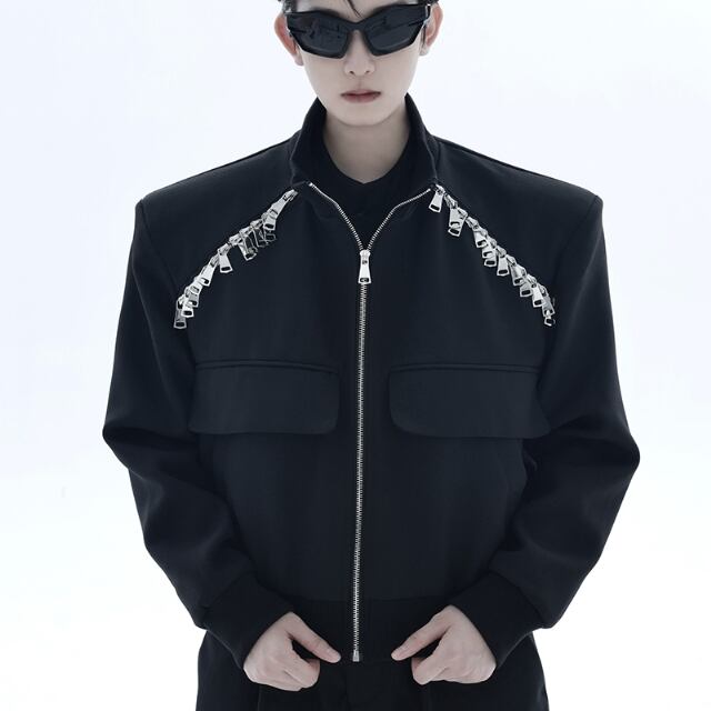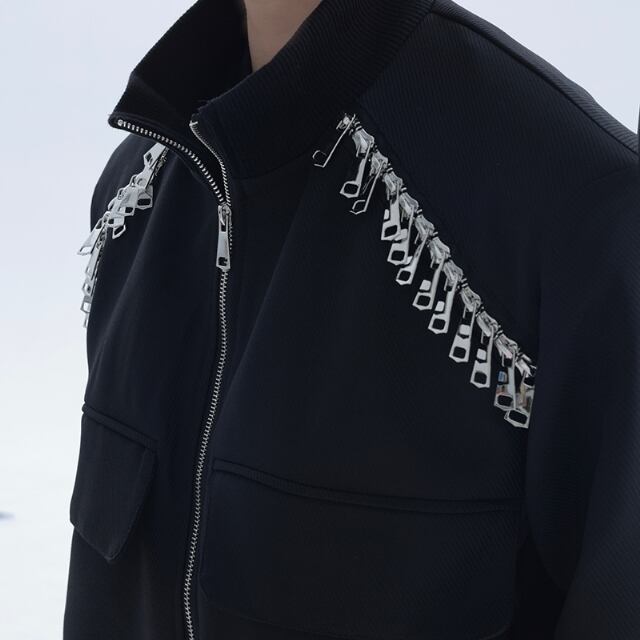 【予約販売】ブルゾン ジップデザイン 長袖 メンズ 無地 黒 ブラック カジュアル シック こなれ感 お洒落 韓国 トレンド 春 秋 夏 M/L/XL