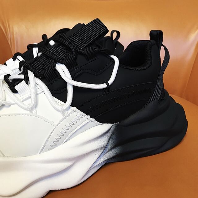 【予約販売】スニーカー 厚底 ダッド メンズ ビッグシルエット アグリースニーカー 靴 ホワイト×ブラック グラデーション スポーティー お洒落 カジュアル ストリート 24cm/24.5cm/25cm/25.5cm/26cm/26.5cm