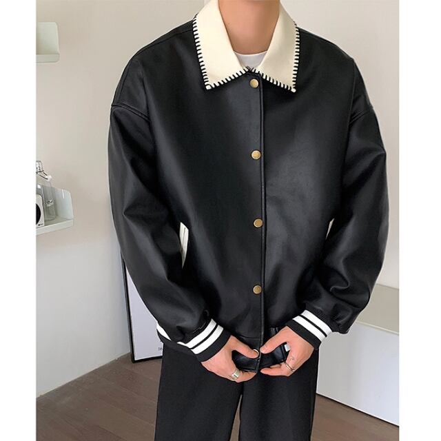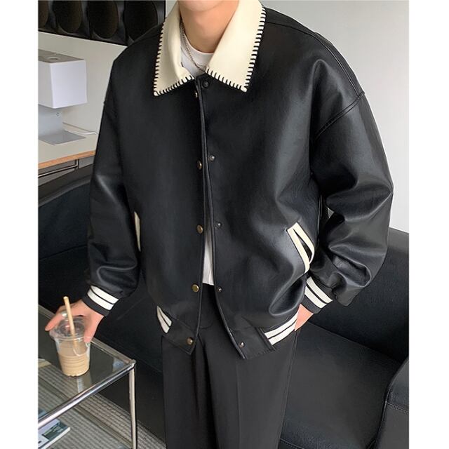 【予約販売】ブルゾン アウター レザー 革ジャン ブラック 無地 PU ショート丈 メンズ お洒落 こなれ感 カジュアル ベーシック 秋 春 大きいサイズ M/L/XL/2XL