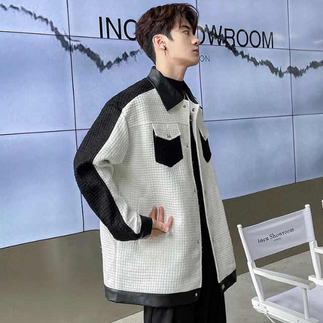 【予約販売】ジャケット アウター ホワイト ブラック バイカラー ショート丈 メンズ レトロ クラシカル お洒落 こなれ感 シック トレンド 秋 春 S/M/L/XL/2XL