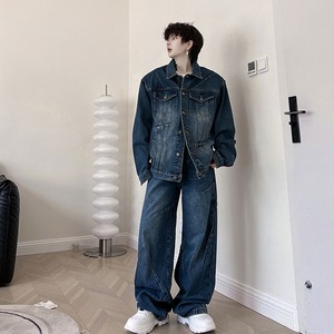 【予約販売】メンズ セットアップ メンズ デニム カジュアル ブルー Gジャン こなれ感 韓国 ベーシック シンプル パンツ セット セットアップ ワイド トレンド M/L/XL