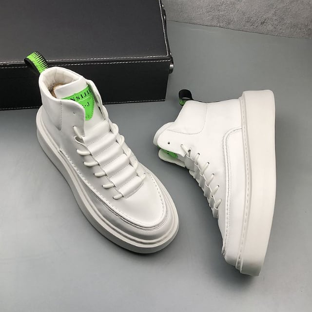 【予約販売】スニーカー ハイカット 厚底 シンプル レザー 靴 白 黒 ブラック ホワイト スポーティー お洒落 カジュアル ストリート 24cm/24.5cm/25cm/25.5cm/26cm/26.5cm