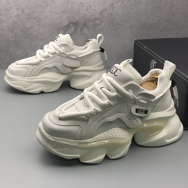 【予約販売】スニーカー 厚底 ダッド メンズ ビッグシルエット ワントーン 韓国 アグリースニーカー 靴 グリーン/ホワイト/ブラック/グレー スポーティー お洒落 カジュアル ストリート 24cm/24.5cm/25cm/25.5cm/26cm/26.5cm