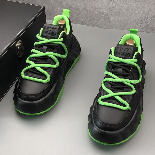 【予約販売】スニーカー ダッドスニーカー 厚底 シンプル 靴 パープル/ホワイト/ブラック×グリーン スポーティー お洒落 カジュアル ストリート 24cm/24.5cm/25cm/25.5cm/26cm/26.5cm