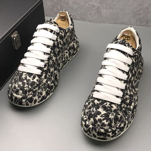 【予約販売】スニーカー 厚底 メンズ 韓国 靴 ホワイト ブラック 花柄 ラインストーン キラキラ ビジュー スポーティー お洒落 カジュアル ストリート 24cm/24.5cm/25cm/25.5cm/26cm/26.5cm