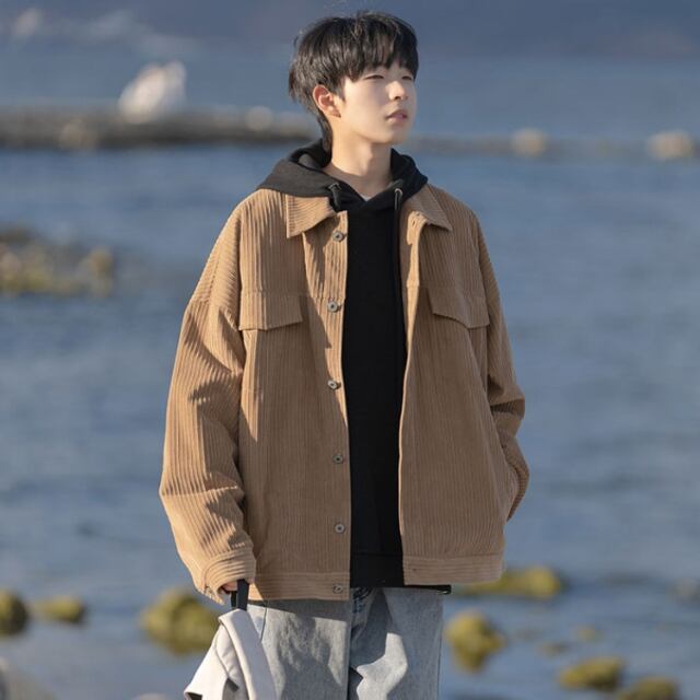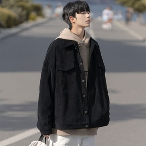 【予約販売】ブルゾン ジャンバー 長袖 コーデュロイ アウター ショート丈 メンズ アイボリー/ブラック/ブラウン 無地 お洒落 こなれ感 韓国 ベーシック 秋 冬 大きいサイズ M/L/XL/2XL