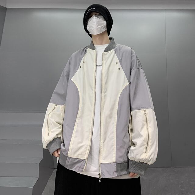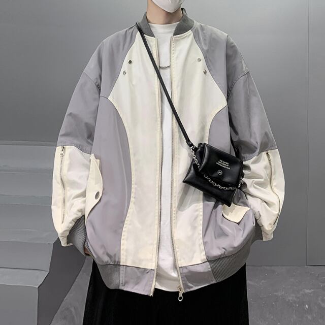 【予約販売】ブルゾン MA-1 アウター アーミー ジップアップ 無地 ツートン バイカラー ブラック グレー 防寒 ジャケット ベーシック メンズ カジュアル 男前 こなれ感 お洒落 韓国 トレンド 秋 冬 M/L/XL/2XL