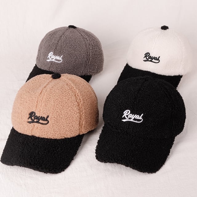 【予約販売】キャップ メンズ 帽子 アウトドア 防寒 もこもこ B系 ワンポイント ブラック/ベージュ/グレー/ホワイト 野球帽 ストリート スポーティー ダンス こなれ感 お洒落 韓国 トレンド トレンド
