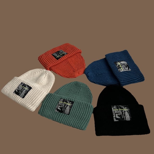 【予約販売】ニット帽 ワッチ ロールアップ メンズ ざっくり編み ストリート アウトドア カジュアル 防寒 ネイビー/グリーン/ブラック/オフホワイト/オレンジ ダンス ヒップホップ こなれ感 お洒落 韓国 トレンド