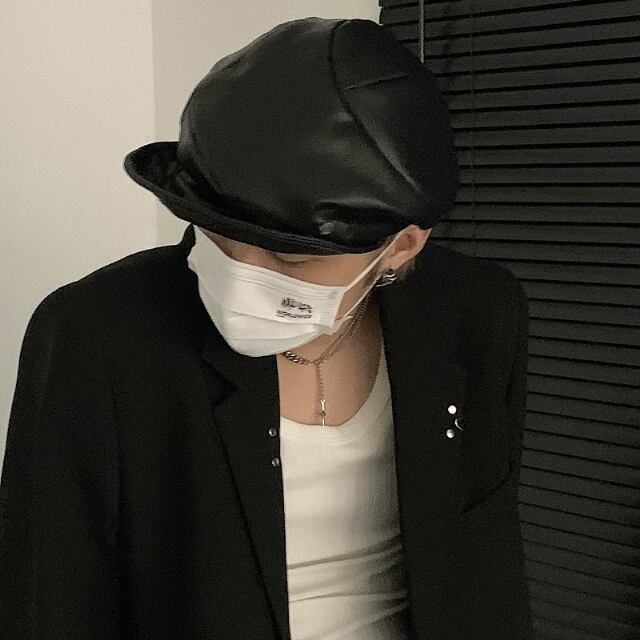 【予約販売】キャスケット メンズ 紳士 帽子 シック レザー 無地 ブラック 黒 モード クラシカル ベーシック シンプル かっこいい こなれ感 お洒落 韓国 トレンド