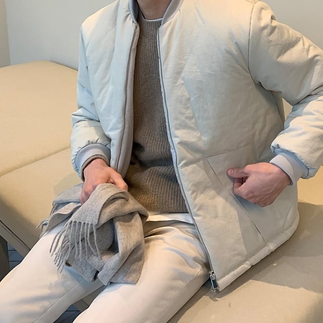 【予約販売】ブルゾン メンズ 無地 アウター ブラック アイボリー ショート丈 シンプル 防寒 お洒落 こなれ感 ベーシック 秋冬 M/L/XL