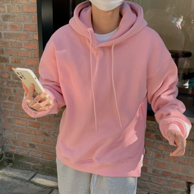 【予約販売】パーカー セーター 無地 フーディ スリット メンズ グレー ピンク オーバーサイズ こなれ感 ストリート お洒落 韓国 トレンド 秋冬 M/L/XL