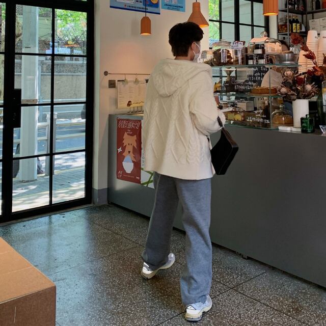 【予約販売】ニット パーカー セーター アウター 無地 フード付き メンズ グレー アイボリー オーバーサイズ こなれ感 ストリート お洒落 韓国 トレンド 秋冬 S/M/L