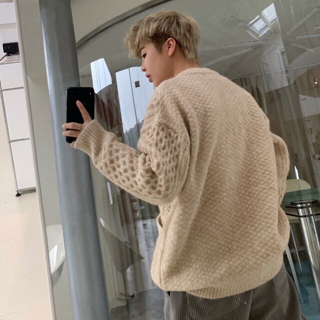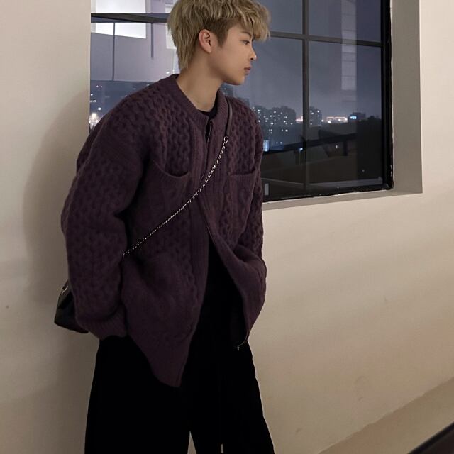 【予約販売】カーディガン ニット セーター ざっくり 無地 メンズ パープル ベージュ こなれ感 ストリート お洒落 韓国 トレンド 秋冬 M/L/XL