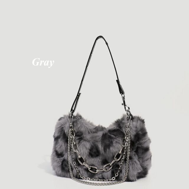 バッグ ハンドバッグ レディース レオパード アニマル チェーン付き おしゃれ ふわふわ ファー モコモコ パーティ 華やか 秋冬 ホワイト/カーキ/グレー/ピンク